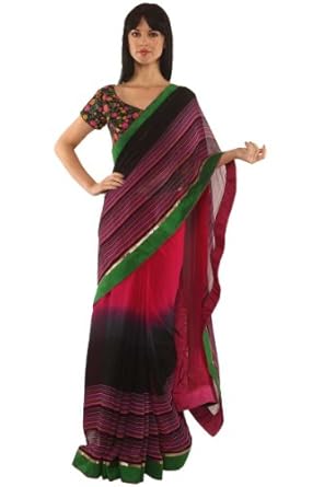 Amaranth Red and Black embroidered party saree intricate with stripes print and patch patti border work.Saree comes with an unstitch blouse piece which can be customised as per your requirement. Customisation includes changing front neck style, back neck style, increasing/reducing the length of sleeves.Accessories which is shown in the image is only for shooting purpose.There might be some color variation.Time to deliver: 15 days.