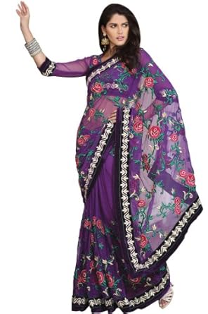 Amethyst Violet embroidered party saree intricate with resham thread, sequins, floral work, leaf work and patch patti border work.Saree comes with an unstitch blouse piece which can be customised as per your requirement. Customisation includes changing front neck style, back neck style, increasing/reducing the length of sleeves.Accessories which is shown in the image is only for shooting purpose.There might be some color variation.Time to deliver: 10 days.