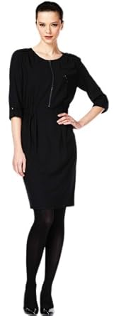 Chendvol Waisted Pleat Dress with Shoulder Ornament and Zipper for Women