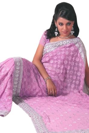 Lilac Violet embroidered wedding saree embellished with resham thread, sequins work, floral work, zari work, stone and patch patti border work.Saree comes with an unstitch blouse piece which can be customised as per your requriment.Customisation includes changing front neck style, back neck style, increasing/reducing the length of sleeves.There might be some color variation.Time to deliver: 10 days.