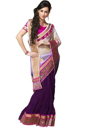 Off-white and Byzantium Purple embroidered party saree intricate with zari thread, resham thread, sequins, floral work, keri work and patch patti border work.Saree comes with an unstitch blouse piece which can be customised as per your requirement. Customisation includes changing front neck style, back neck style, increasing/reducing the length of sleeves.Accessories which is shown in the image is only for shooting purpose.There might be some color variation.Time to deliver: 25 days.