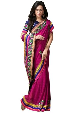 Red-violet embroidered party saree intricate with zari thread, resham thread, sequins, floral work, leaf work, patch work and patch patti border work.Saree comes with an unstitch blouse piece which can be customised as per your requirement. Customisation includes changing front neck style, back neck style, increasing/reducing the length of sleeves.Accessories which is shown in the image is only for shooting purpose.There might be some color variation.Time to deliver: 25 days.