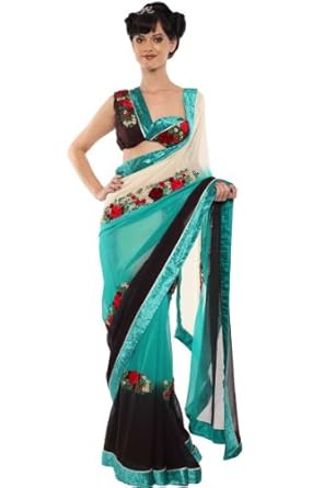 Robin-egg Blue and Black embroidered party saree intricate with resham thread, floral work, leaf work and patch patti border work.Saree comes with an unstitch blouse piece which can be customised as per your requirement. Customisation includes changing front neck style, back neck style, increasing/reducing the length of sleeves.Accessories which is shown in the image is only for shooting purpose.There might be some color variation.Time to deliver: 15 days.