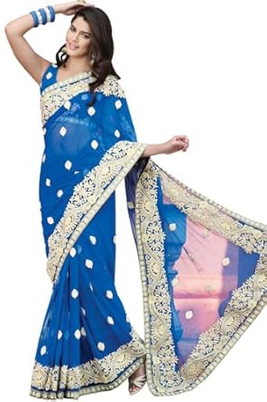 Royal Blue embroidered party saree intricate with resham thread, sequins, floral work and patch patti border work.Saree comes with an unstitch blouse piece which can be customised as per your requirement. Customisation includes changing front neck style, back neck style, increasing/reducing the length of sleeves.Accessories which is shown in the image is only for shooting purpose.There might be some color variation.Time to deliver: 10 days.