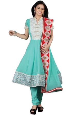Turquoise Blue embroidered festival anarkali kameez intricate with resham thread, zari thread, sequins work, neck work, floral work, leaf work and patch patti border work.This ready made kameez is available from chest size 38 to 42. If you want full sleeves then there are 2 choices:1) Full net sleeves @3usd. 2) Full georgette sleeves @5usd.Accessories which is shown in the image is only for shooting purpose.There might be some color variation.Time to deliver: 25 days.